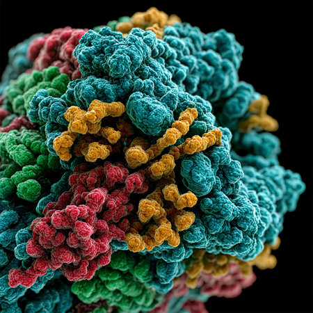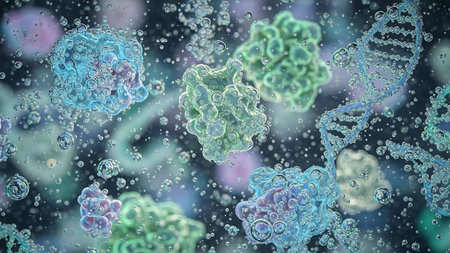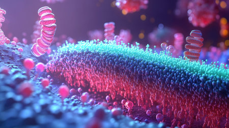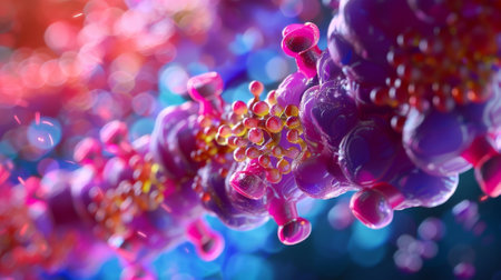 This visually stunning image showcases an intricate molecular structure in vivid colors, representing biological processes at a microscopic level.