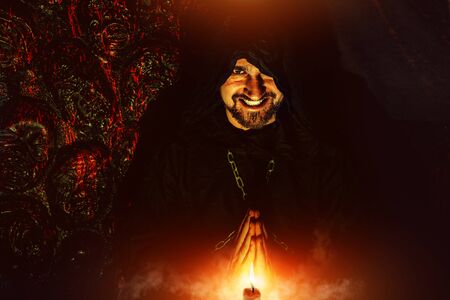 A warlock summoning a legion of demons to do their bidding . Fantasy concept, Illustration painting.