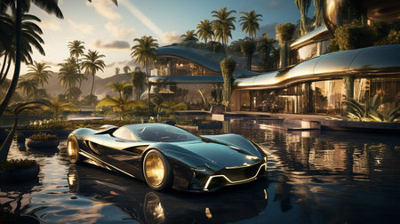 Sleek Futuristic Supercar Parked at Dusk Showcasing Elegance and Technological Prowess