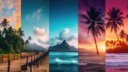 Tropical Paradise Collage of Five Stunning Ocean Views with Lush Islands and Azure Water