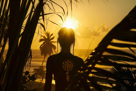 A sunset beach silhouette, outline framed by the golden hues of the setting sun