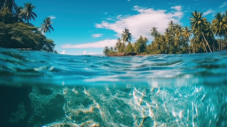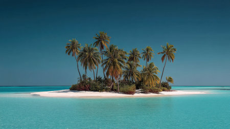 Experience the tranquility of a secluded tropical island, featuring swaying palm trees and crystal turquoise waters under a bright sunny sky, perfect for relaxation.