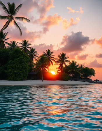 Discover a tranquil tropical island surrounded by crystal-clear waters and palm trees, offering a perfect escape for relaxation and rejuvenation in nature's beauty.