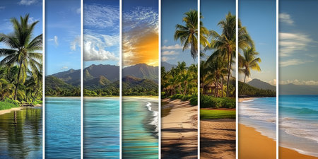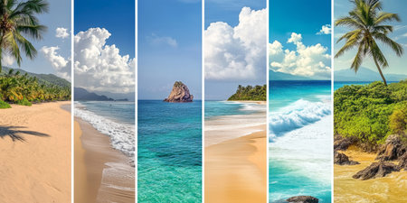 Panoramic view of tropical beaches and beautiful sky. Collage.Wide photo.