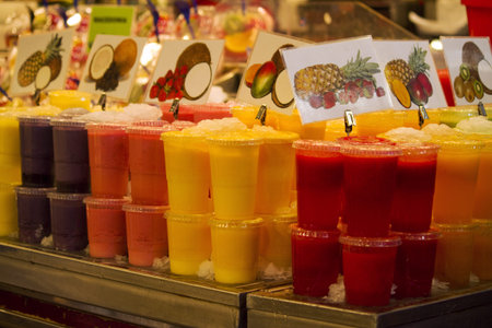 Fresh Juice at Boqueria Market in Ramblas street, Barcelona, Spain