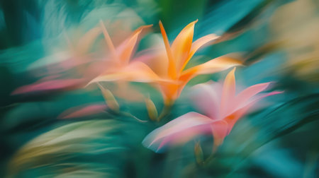 A tranquil representation of blooming flowers with soft focus, showcasing vibrant petals and a serene atmosphere, perfect for adding a touch of nature's beauty to any project.