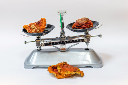 Dry fly agaric mushrooms lie on the scales showing their mass.