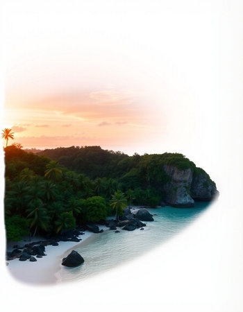 Idyllic tropical island lagoon landscape with lush vegetation backdrop