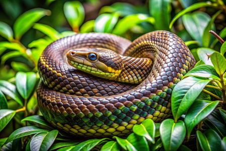 coiled snake with stunning patterns in natural habitat, created with generative ai