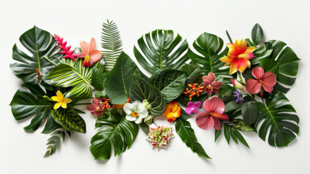 A stunning display of tropical flowers and lush greenery, showcasing vibrant colors and textures perfect for decor, design inspiration, and nature lovers.