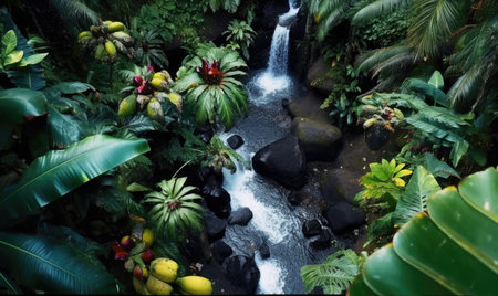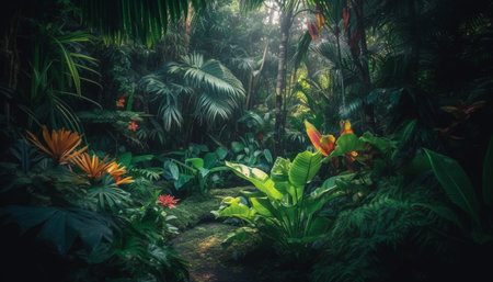 Tranquil scene in tropical rainforest, nature beauty generated by artificial intelligence