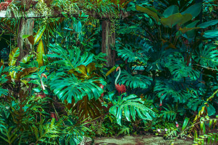 Tropical greenhouse mist garden scene