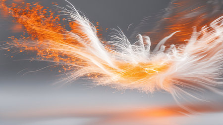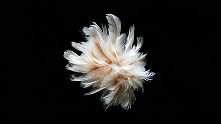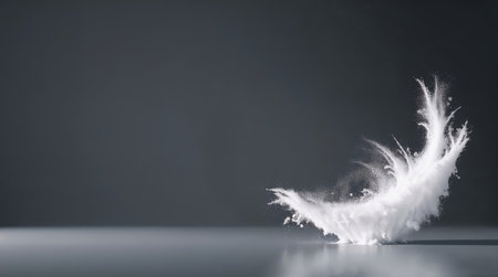 Artistic capture of a white feather creating a splash-like effect against dark background. for concepts of gentleness, impact, creativity, spirituality, or minimalist design projects.