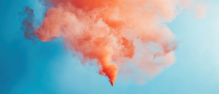 A vibrant orange smoke cloud billows upward against a clear blue sky creating a striking contrast in colors that captures attention.