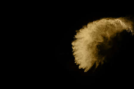 A striking image of a yellow dust explosion, set against a dark backdrop, showcasing dynamic movement, energy, and creative potential in the abstract.