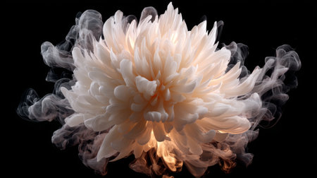 A stunning flower bloom emerges from gentle smoke in this captivating image, creating a balance of beauty and mystique, perfect for artistic displays and creative projects.