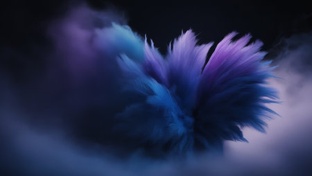 AI Generated. A Single Feather Partially Submerged in Swirling Blue Smoke