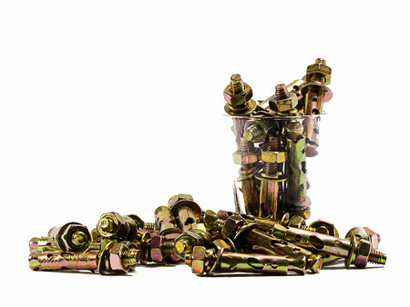 bolts and screw on white background