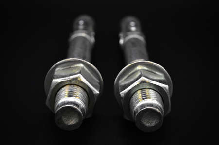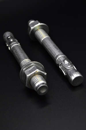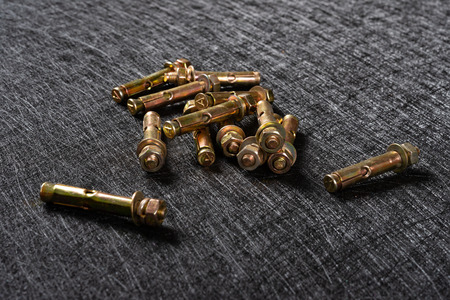 several expansion bolts on a dark background