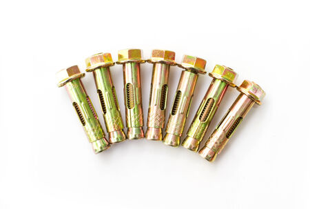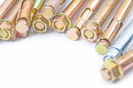 Various new anchor bolts isolated on white