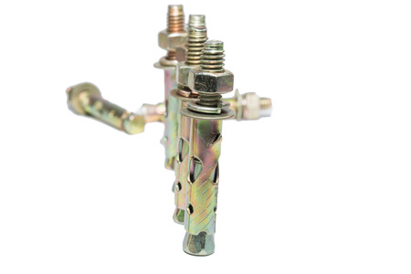 industrial background metalic anchors for concrete wall isolated