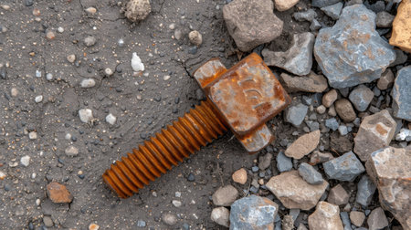 A close-up image of a rusty bolt showcasing detailed textures and wear on a rough surface, ideal for industrial and mechanical design concepts.