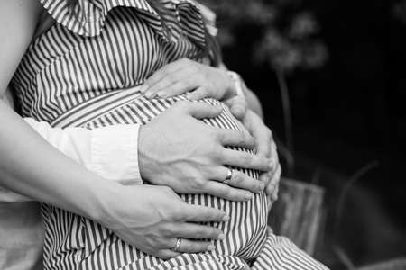motherhood and pregnancy. hands on pregnant woman belly. Baby expectation