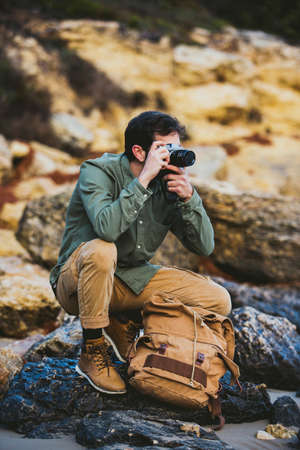 Portrait of young Man taking pictures outdoors