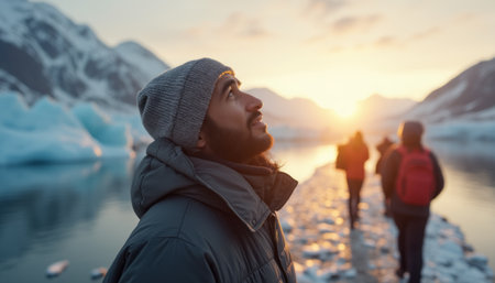 Majestic Mountain Landscape and Rugged Man