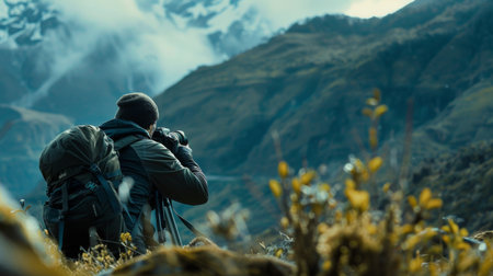 Back side of a photographer take a photo on the mountain.