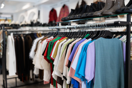 Clothing on display in a boutique store in shopping mall, fast fashion concept