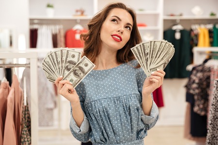 Beautiful young woman shopping in a clothing store. Shopping concept.