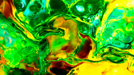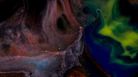 art photography of abstract marbleized effect background. Black, yellow, green and blue creative colors. Beautiful paint