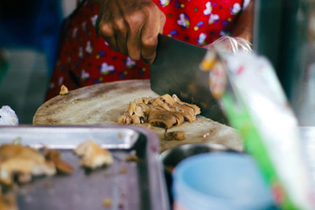Chef cut vegetable on cutting board with knife japan,slicing radish