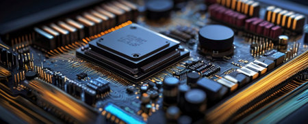 close-up of electronic computer hardware technology. Motherboard digital chip. ai generated