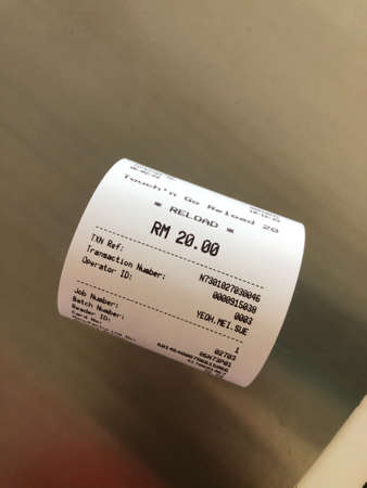 Klang, Malaysia: March 10, 2022- Paper sales receipt on the wooden table