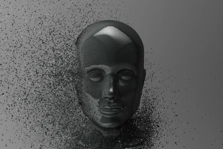 3D Rendering of face of a man who crumbles