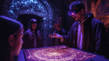 People experiencing immersive virtual reality in digital world