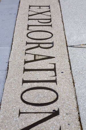 The word exploration written into a sidewalk