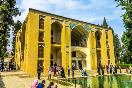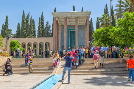SHIRAZ, IRAN - MAY 2, 2015: Visitors take a tour of the mausoleum of Saadi, known also as the tomb of Sa'dy or Sadiyeh.