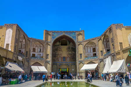 Isfahan Qeysarie Gate Main Entrance into the Bazaar with Shops and People View from Naqsh-e Jahan Square