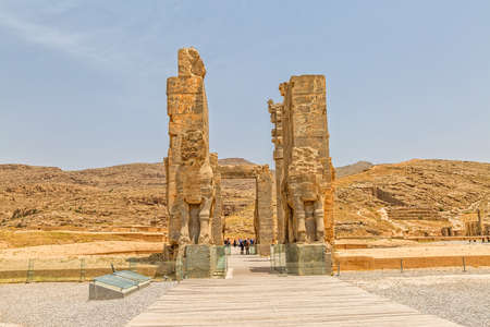 PERSEPOLIS, IRAN - MAY 3, 2015: Xerxes Gate of nations with Lamassu statues at the entrance of the old city.