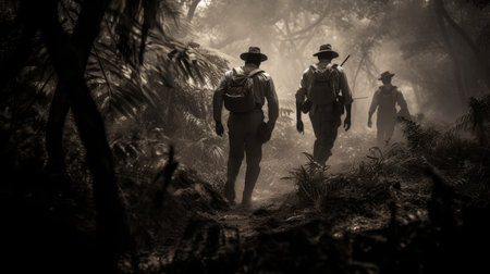 Colonial-Era Jungle Expedition: Explorers traverse jungle
