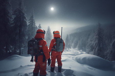 Astronauts exploring the world in the mountains. 3d rendering