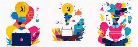 A set of three posters for AI power Creative idea business solutions illustration.