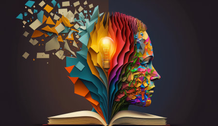 Colorful mind on books. Ideas and knowledge concept illustration. Created with Generative AI technology