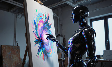 Robot painting a vibrant abstract masterpiece