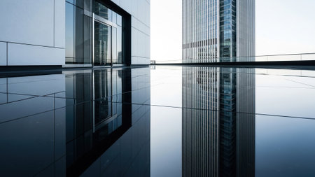 A stunning view of modern glass buildings in an urban setting, reflecting light and surroundings, showcasing contemporary architecture and design.