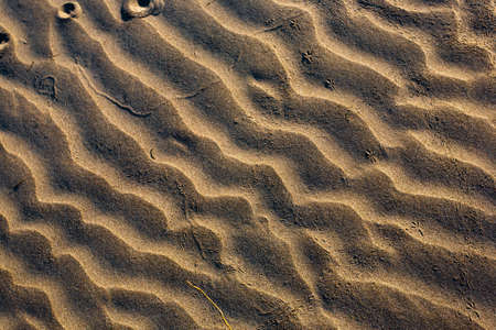 Waves of sand on the beach in the evening. Natural background