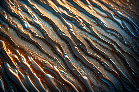 Serenity in Motion: Captivating Close-up of Ripples adorning Wet Sand on the Beach